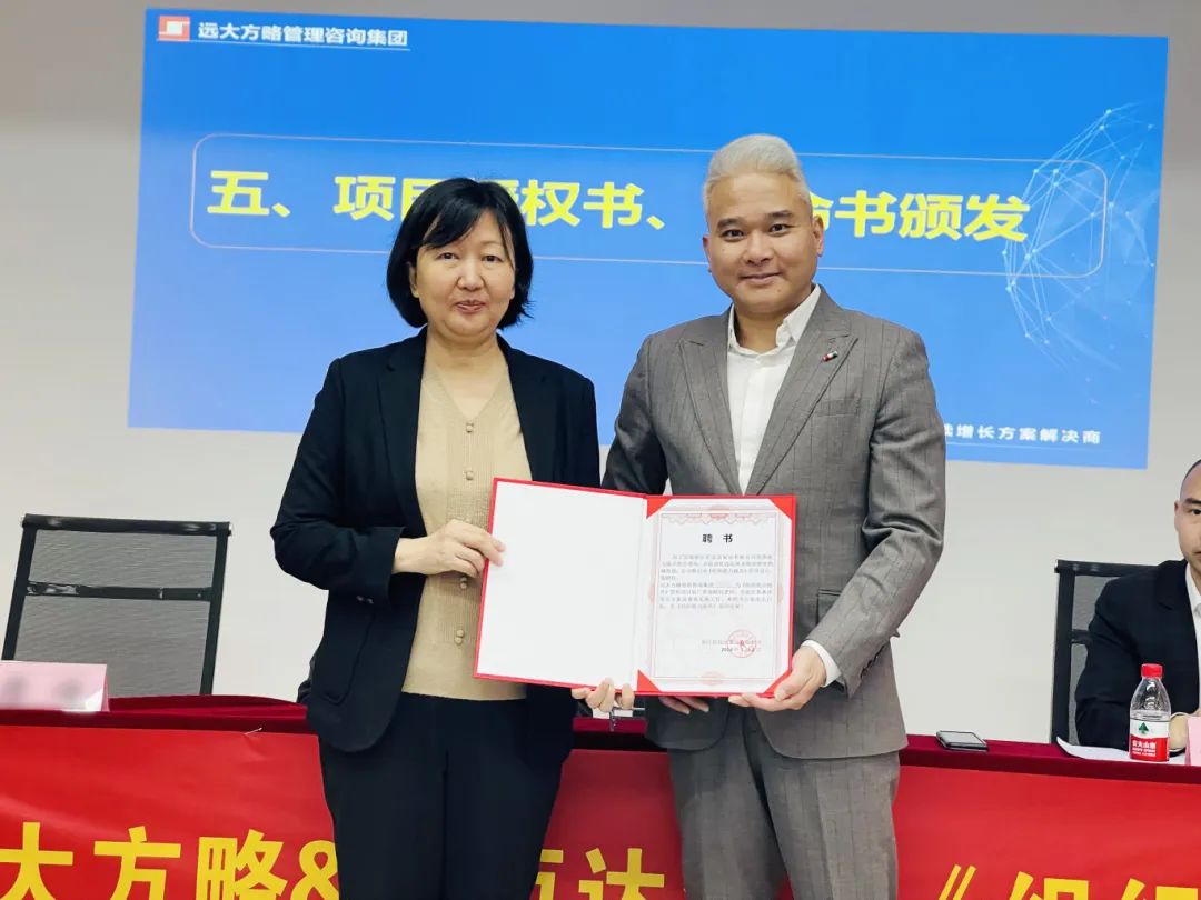 △胡總為遠(yuǎn)大方略精益變革項(xiàng)目組頒發(fā)授權(quán)書