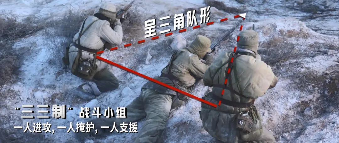 三三制戰術較早起源于抗日戰爭期間,成熟于國共內戰,大量運用于抗美援朝戰爭,是我軍步兵訓練大綱中的一種步兵“班組突擊”戰術。在抗美援朝期間,憑借著這種戰術,我志愿軍戰士,在抗美援朝的戰場上,將裝備精良且人數眾多的聯合國軍打得暈頭轉向,甚至多次進攻至美軍的核心陣地。也是運用三三制戰術,志愿軍還將英國特遣隊全數殲滅,另外在對印的作戰中,三名志愿軍戰士利用三三制戰術,大膽縱深敵陣近十公里,連奪多個印軍炮兵陣地。類似的例子很多。