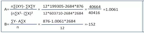 所以:Y=AX+B=1.0061X-152