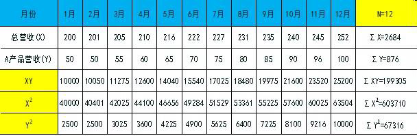 用回歸直線分析法建立A產(chǎn)品的營收預(yù)測模型;