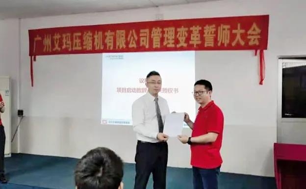 致辭后,謝總向遠(yuǎn)大方略老師頒發(fā)了授權(quán)委托函;副總經(jīng)理黃君鳳女士宣讀了廣州艾瑪組織系統(tǒng)管理變革小組架構(gòu)、成員名單及任命書,小組成員現(xiàn)場簽訂了責(zé)任書。