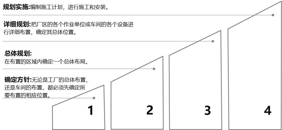 我們主要選取具代表性的布局方法--系統(tǒng)布置設(shè)計SLP法,通過如下階段的策劃與落地來開展項目: