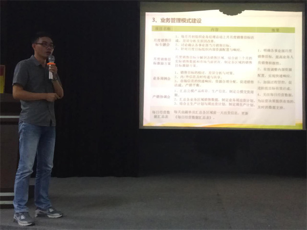 遠大方略項目組咨詢師王藝老師謹代表參于過凱晟管理變革的項目組老師們作了總結(jié)發(fā)言。對凱晟一年多的管理變革進行了深刻的總結(jié)以及對凱晟下半年的工作規(guī)劃作出鄭重的表態(tài)。