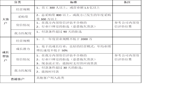(4)建立YHD公司客戶分類分級(jí)標(biāo)準(zhǔn),具體標(biāo)準(zhǔn)如下: