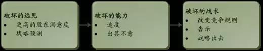 (5)改變競爭規(guī)則(Shifting the rules against the Competition):改變競爭規(guī)則可以打破產(chǎn)業(yè)中既有的觀念和標(biāo)準(zhǔn)模式。亦步亦趨,是被動應(yīng)戰(zhàn),常常取不到好的效果。