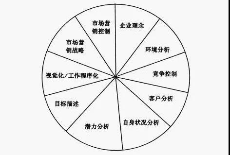 戰(zhàn)略管理十步驟系統(tǒng)是有助于企業(yè)從受眾的角度發(fā)現(xiàn)市場的一種工具,十步驟系統(tǒng)模型包括:企業(yè)理念、環(huán)境分析、競爭控制、客戶分析、自身狀況分析、潛力分析、目標(biāo)描述、視覺化/工作程序化、市場營銷戰(zhàn)略、市場營銷控制。每一部分的內(nèi)容自成體系。