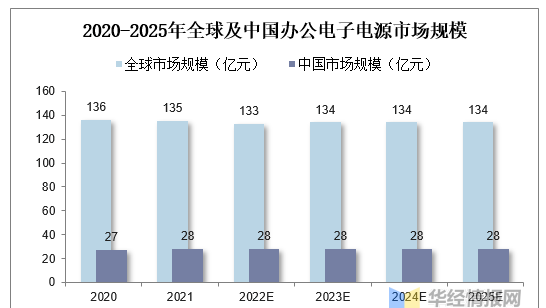 辦公電子電源主要包括用于給顯示器,打印機等終端設(shè)備充電的電源,未來其市場規(guī)模將隨各國辦公需求增長而增長。預(yù)計至2025年全球辦公電子電源市場規(guī)模將達134億元,其中液晶顯示器電源,打印機電源市場規(guī)模分別達43億元,92億元。至2025年中國辦公電子電源市場規(guī)模將達28億元,2020-2025年CAGR達1.23%,其中液晶顯示器電源,打印機電源市場規(guī)模分別達10億元,18億元。