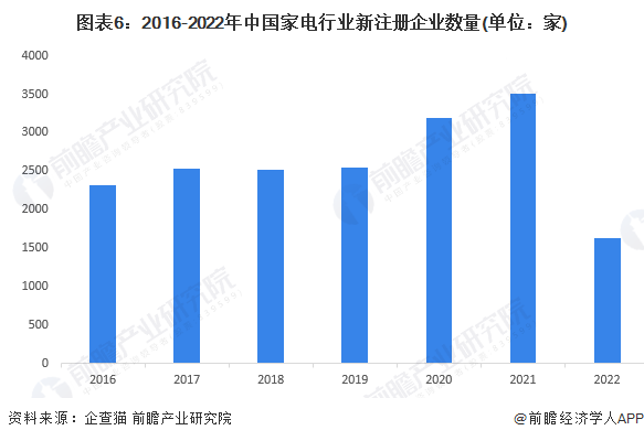 1、家電企業注冊數量:2021年達到3503家