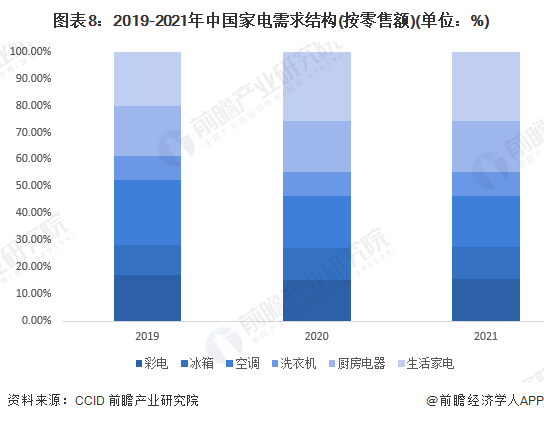 3、家電銷售結構:2021年彩電、生活家電比重上升