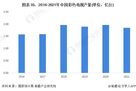 黑色電器中主要包括電視產品,根據國家統計局數據,2016-2021年中國彩色電視機產量呈現波動上升趨勢,2021年達到1.85億臺,較2019年減少約500萬臺,較2020年減少約1100萬臺。