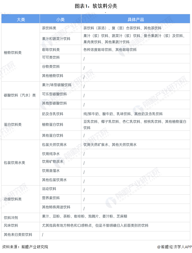 我國軟飲料行業(yè)經(jīng)過40余年的發(fā)展,形成了產(chǎn)品種類繁多,品牌數(shù)目龐大的產(chǎn)品體系,從產(chǎn)品屬性類別上劃分,中國軟飲料行業(yè)可以劃分為如下多種細分市場。不同的產(chǎn)品具有其獨特的屬性,符合各種人群的特殊需求,無論男女老少,總有自己中意的產(chǎn)品和品牌。