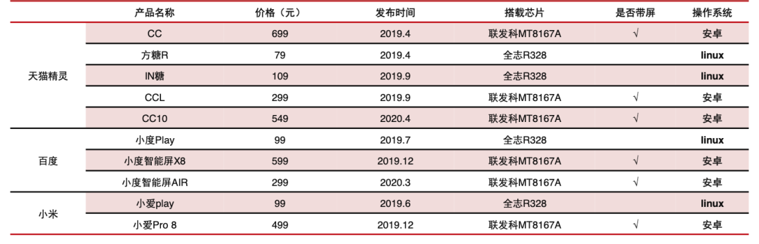 主流智能音箱主控芯片概覽: