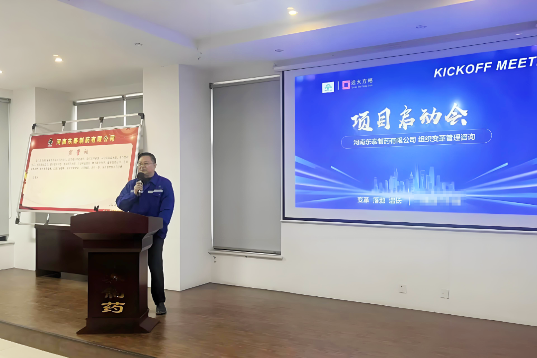 近日,河南東泰制藥有限公司(以下簡稱“河南東泰制藥”)攜手遠(yuǎn)大方略啟動《組織優(yōu)化管理變革》咨詢項目,構(gòu)建更加科學(xué)合理的組織架構(gòu),提升跨部門協(xié)作能力,完善薪酬與績效體系,充分激發(fā)員工的工作積極性與創(chuàng)造力,全面優(yōu)化運(yùn)營流程,降低內(nèi)耗、提升效率,構(gòu)建能夠支撐企業(yè)持續(xù)發(fā)展的組織能力,為企業(yè)的長遠(yuǎn)發(fā)展奠定堅實(shí)基礎(chǔ)。