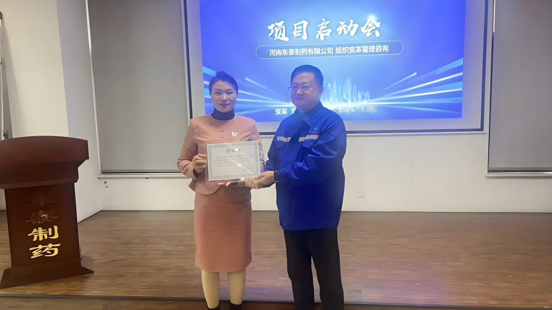 為促進(jìn)項目的有效落地,明確各崗位職責(zé),強(qiáng)化責(zé)任意識,會上東泰制藥苗董向遠(yuǎn)大方略項目組頒發(fā)了授權(quán)書,馬總為各位老師頒發(fā)了聘書,此次授權(quán)和任命不僅體現(xiàn)了東泰制藥對咨詢團(tuán)隊的高度信任,也彰顯了公司破除阻力、推動變革的決心。