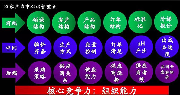 3、運營重點:企業(yè)的商業(yè)模式不一樣,對企業(yè)內部運營的要求和重點也不一樣,例如某中小型企業(yè)是以客戶為中心的,該企業(yè)的運營重點總結如下圖所示(企業(yè)階段、規(guī)模、行業(yè)等存在差異,運營重點也會有差異):