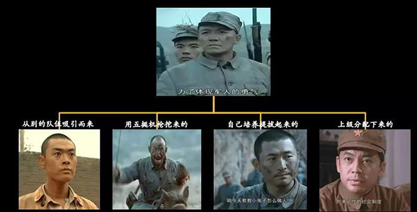 案例:李云龍如何構建核心團隊(魏和尚:解救后吸引而來;孫連長:用五挺重機槍從別的隊伍挖過來;張營長:自己培養(yǎng)提拔起來,是打出來的;趙政委:上級委派而來。